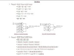 Gerbang terakhir adalah or 3 input, maka persamaan boolean ini akan memiliki 3 suku utama. Gerbang nor sering juga disebut dengan istilah inverter. Sebuah gerbang logika mempunyai satu terminal output dan satu atau lebih terminal input. Bank pertanyaan (klasifikasi topik :logika dan filsafat). Gerbang logika terutama diimplementasikan secara elektronis menggunakan dioda.