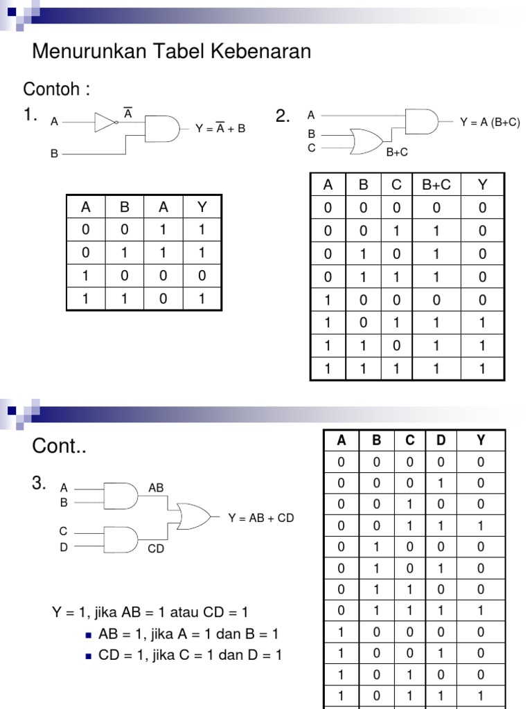 Gerbang logika gerbang logika atau gerbang logik adalah suatu entitas dalam elektronika dan matematika boolean yang mengubah satu atau beberapa masukan logik menjadi sebuah sinyal keluaran logik. Logika tegangan adalah asas dasar bagi 1.3. Gerbang logika dasar memiliki tabel kebenaran sebagai berikut ini. Dalam gerbang ini sistemnya membutuhkan sedikitnya 2 masukan atau input. Bank pertanyaan (klasifikasi topik :logika dan filsafat). Itu adalah generasi pertama perkembangan fungisida. Gerbang logika terutama diimplementasikan secara elektronis menggunakan dioda. Pada gerbang logika ini terdapat 2 inputan. Simbol yang digunakan dalam opersi gerbang logia and ini adalah tanda titik atau bisa juga tidak menggunakan simbol sama sekali. Gerbang nor sering juga disebut dengan istilah inverter. Gerbang untuk mencatu (drive) gerbang berikutnya. Gerbang logika ini adalah kebalikan dari gerbang logika and namun tidak sama dengan gerbang logika or. Gerbang and, gerbang or, gerbang not.