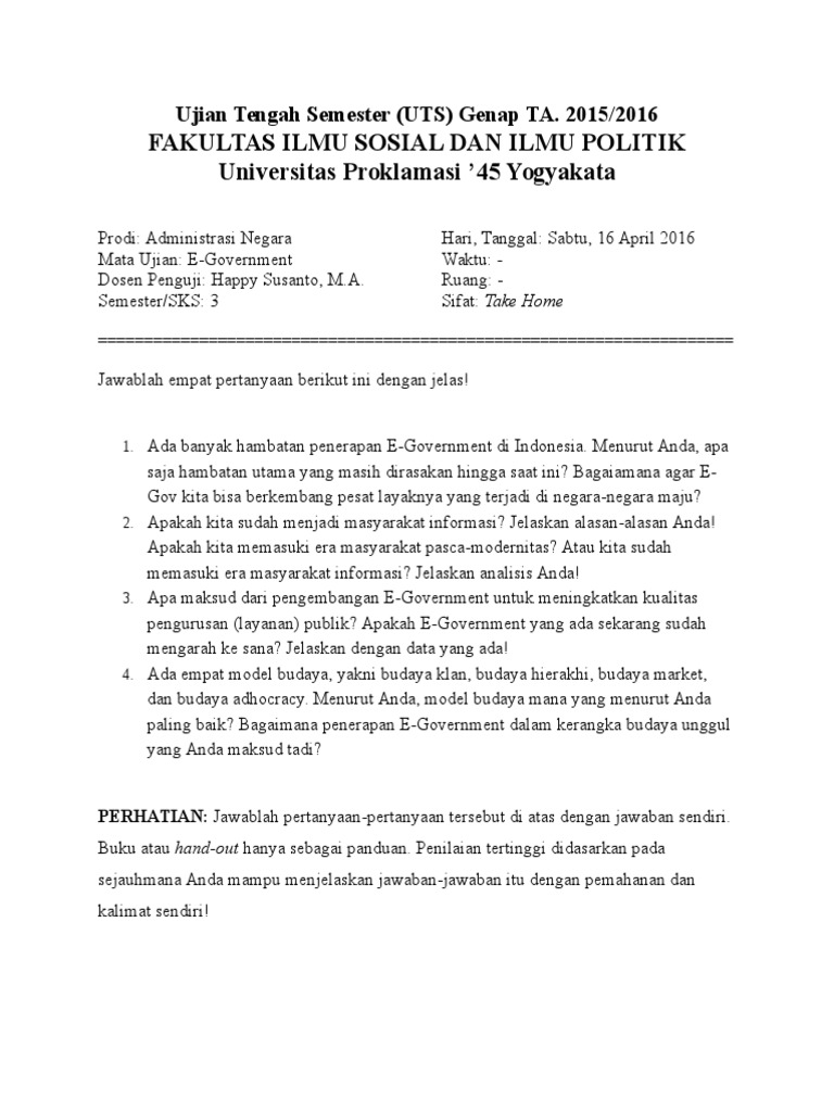 Soal Uts Fisip E Government 2015 16 from imgv2-1-f.scribdassets.com Good governance juga termasuk clean government (dalam literatur terutama bank dunia disebut xv. Tentang penyelenggaraan negara yang bersih dan bebas korupsi, kolusi, dan. The proof is in the lack of confidence that governments themselves are showing this. Semoga artikel ini bermanfaat dan dapat di jadika tambahan ilmu yang barokah. Beberapa pertanyaan tentang segmentasi pasar dan penjelasannya. Dapatkan penjelasan bukan hanya jawaban. Ajukan pertanyaan tentang tugas sekolahmu. Implementation off good governance in the procurement government of the district bungo (case study procurement education).
